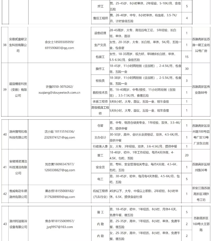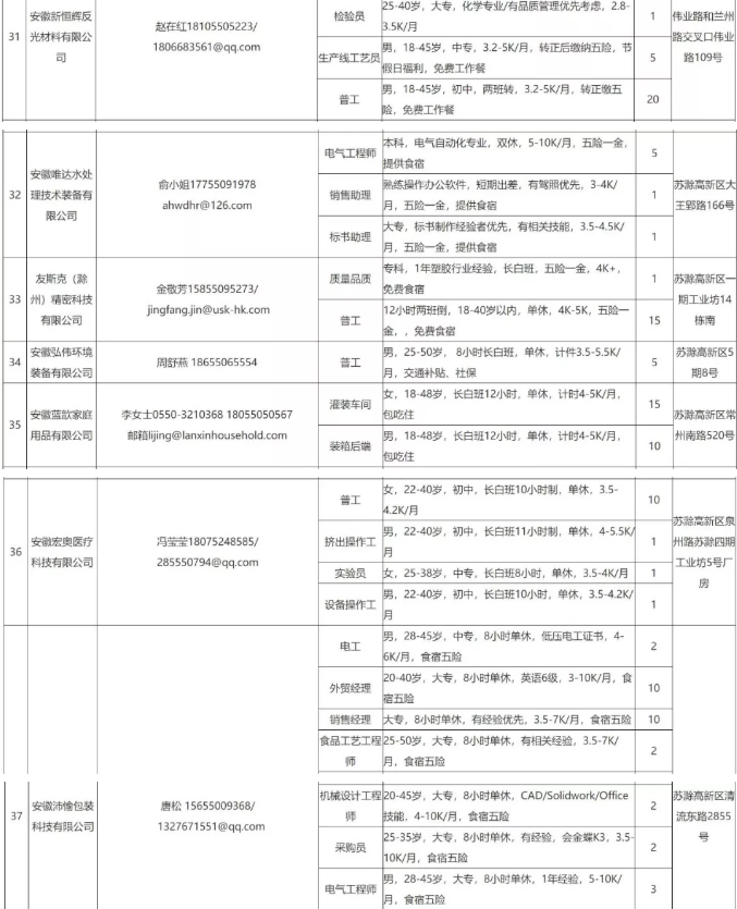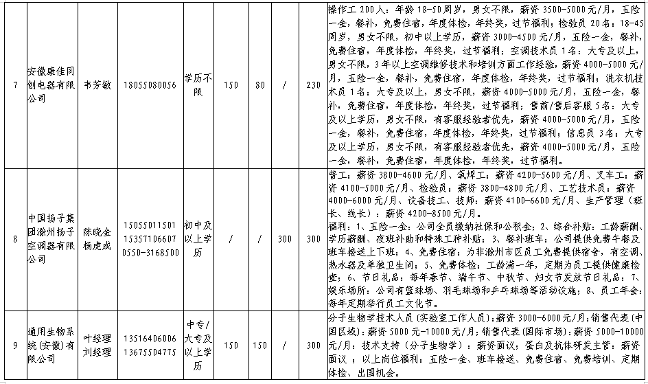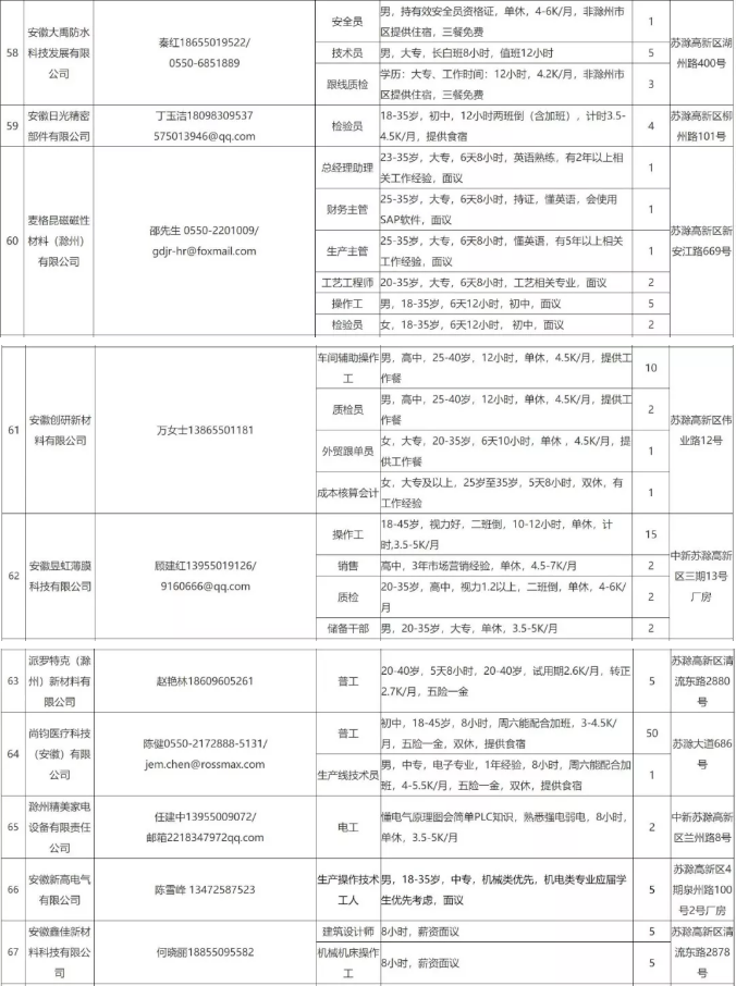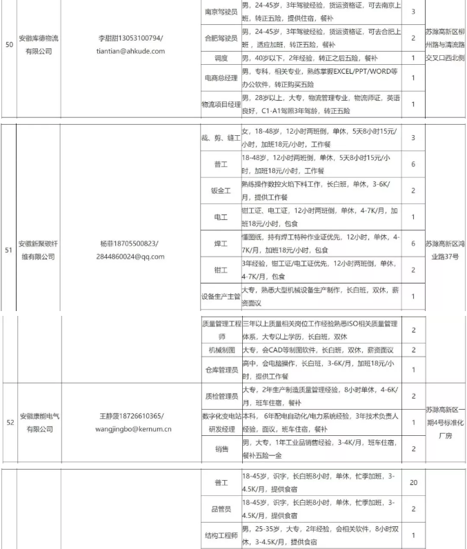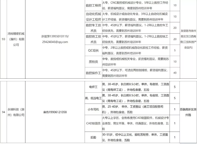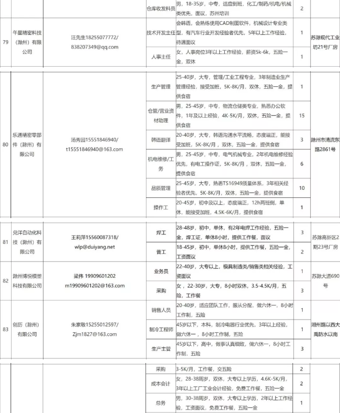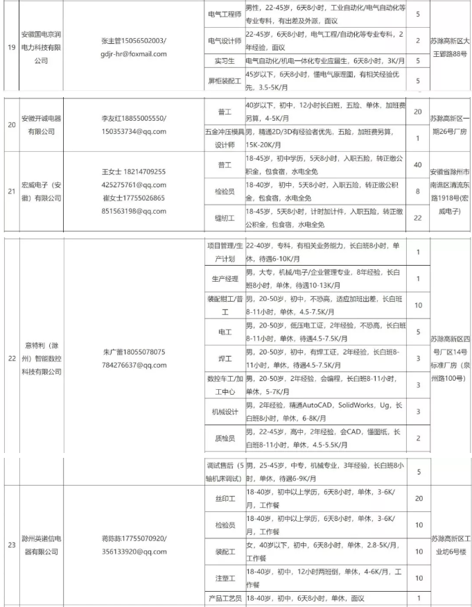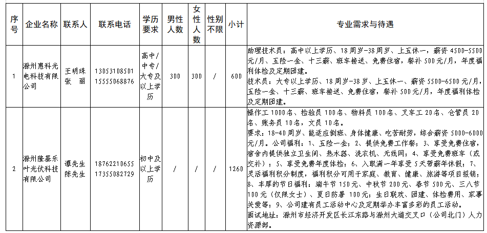 中新苏滁高新区 2020年一季度百家企业五千岗位招聘需求表