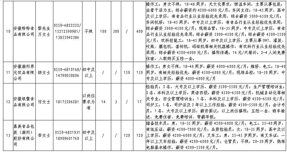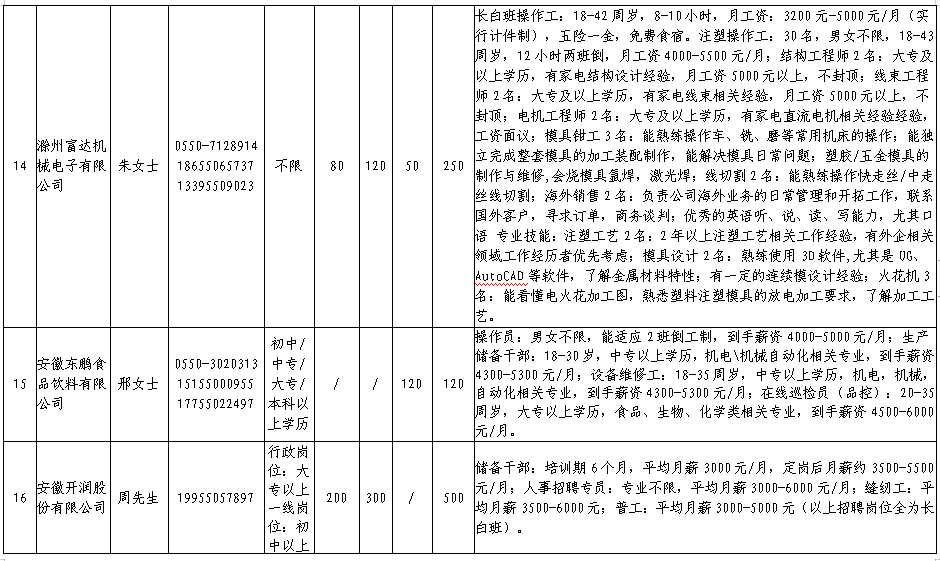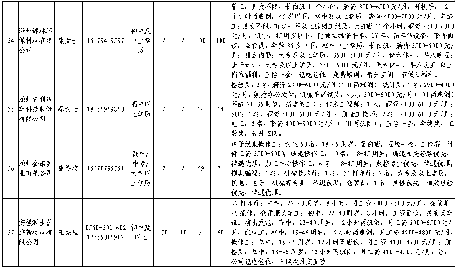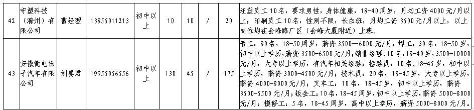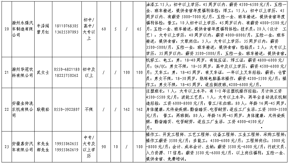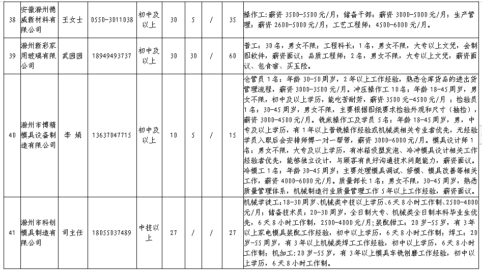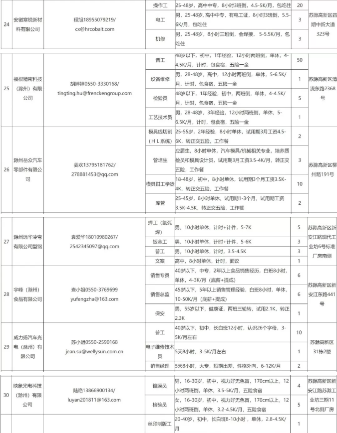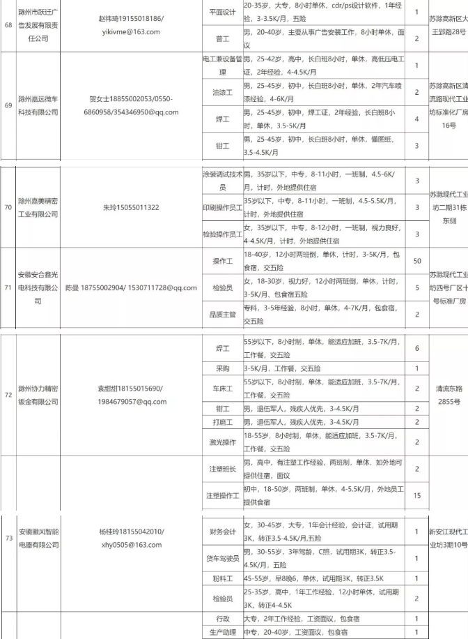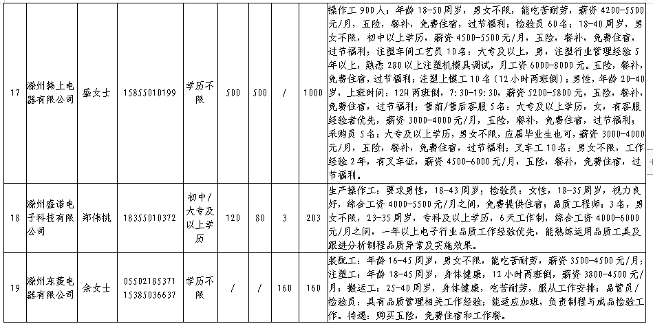 中新苏滁高新区 2020年一季度百家企业五千岗位招聘需求表