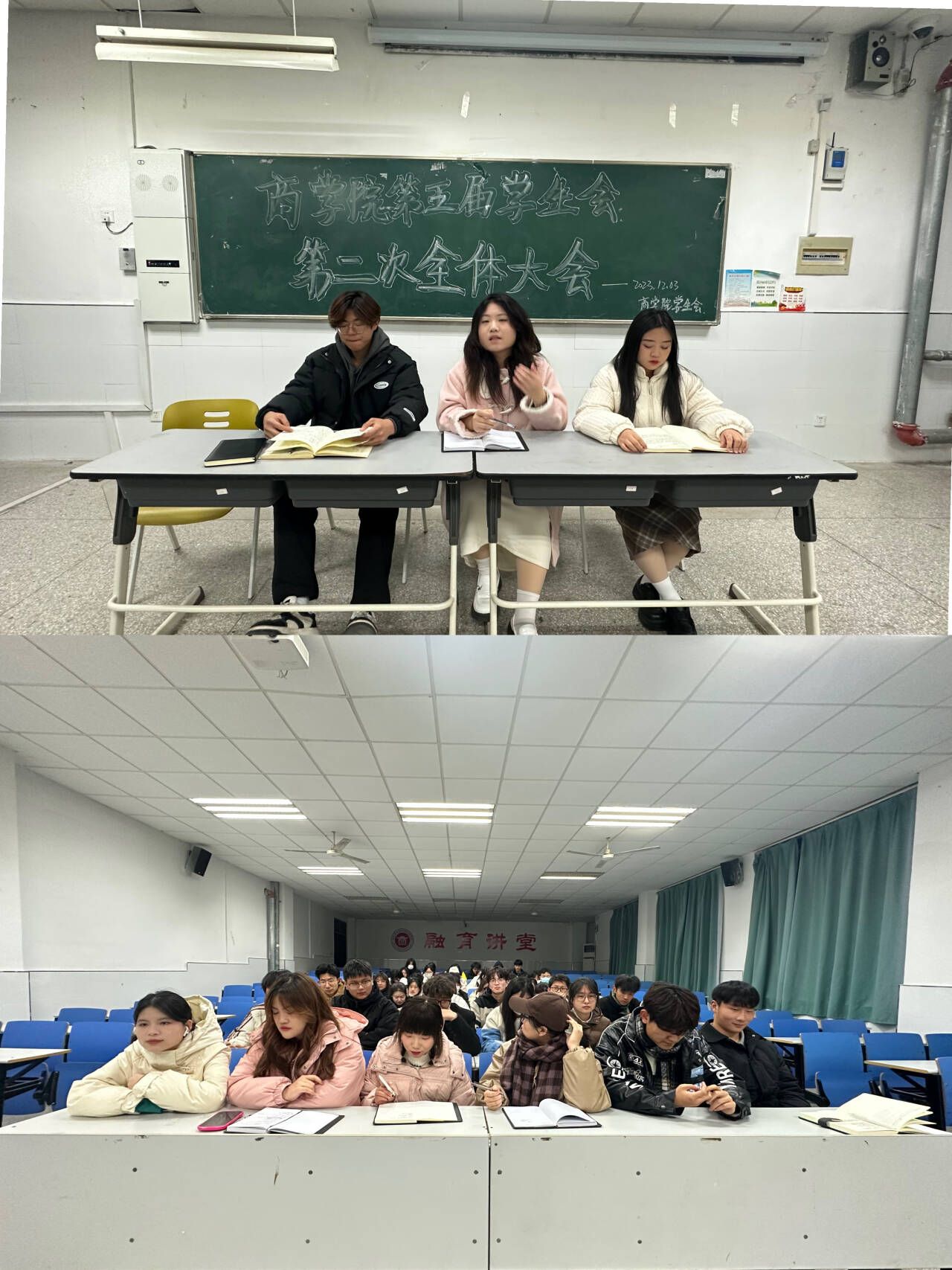 为了让大一干事更好的了解到学生会工作职责,加强学生自主管理能力,商学院学生会于12月3日晚在致真楼1119教室开展了商学院第五届学生会第二次全体大会,学生会全体人员参加此次会议。