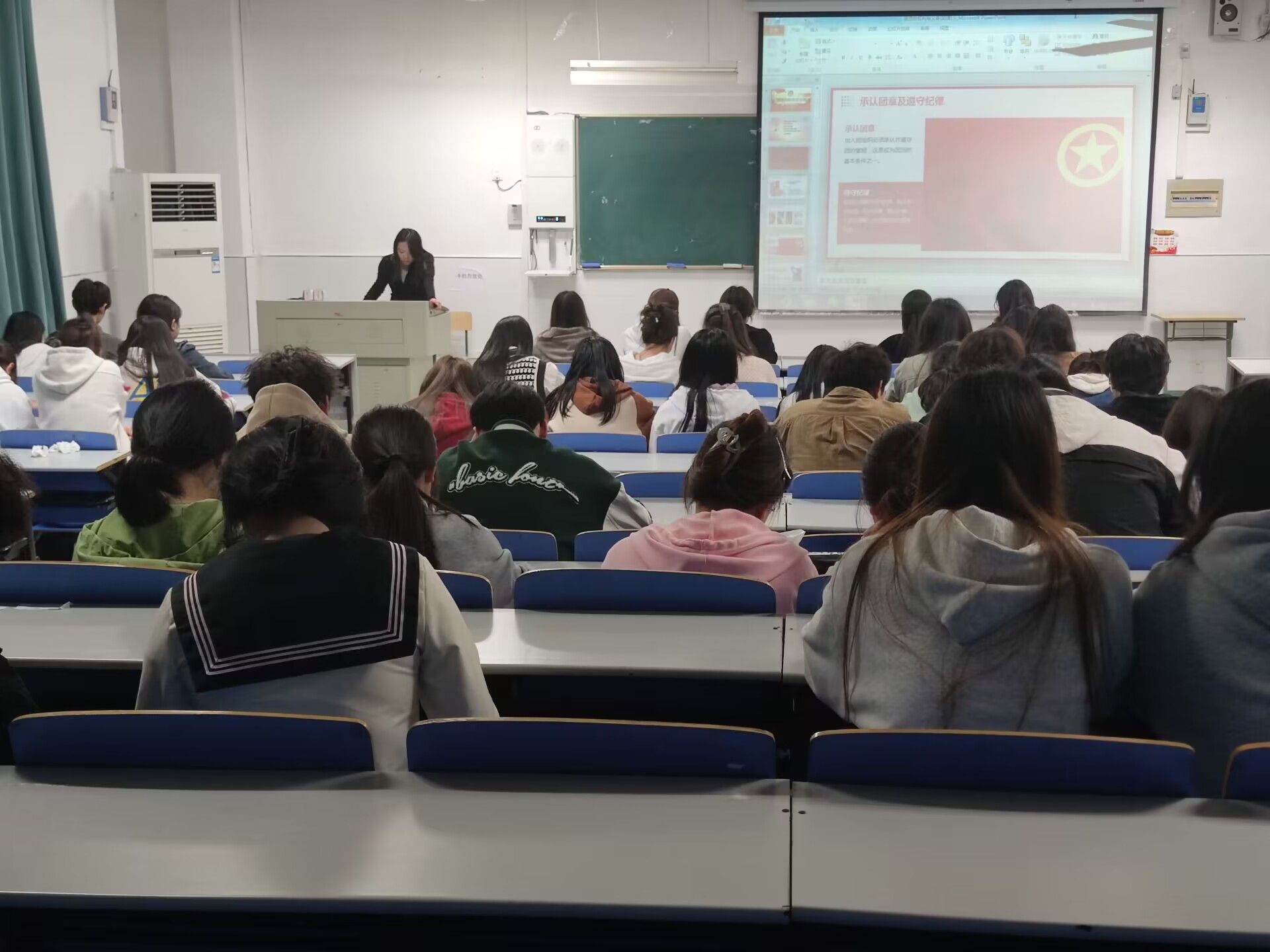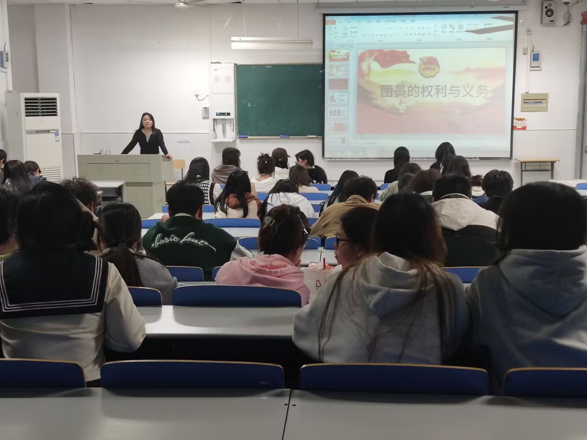 为进一步提高组织力、凝聚力,增强入团积极分子责任担当意识,商学院团总支于4月10日开展“团员的权利与义务”——2024年入团积极分子第三次主题团课。本次的主讲人为把玟倩,全体商学院入团积极分子参与学习。