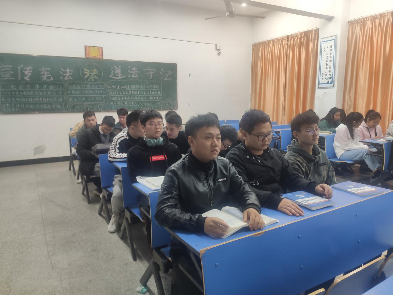 为深入开展宪法学习宣传教育活动,加强法制教育宣传,增强学生的自我保护意识,让学生养成学法、懂法、依法办事的好习惯,有效地树立和维护学校良好的学风以及社会的稳定发展。2019年11月20日上午,18级市场营销2班在1207教室召开了“学宪法、讲宪法”主题班会活动。