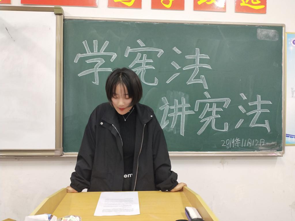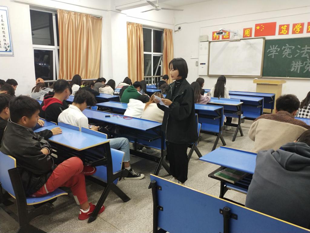 为进一步弘扬宪法精神,商学院19级电子商务二班于11月12日晚在至真楼1208教室举办了“学宪法、守宪法”的主题班会.