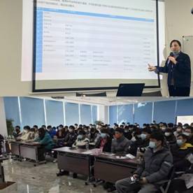 学生到达惠科后,工作人员详细的介绍了企业的发展历史、发展战略以及生产车间分工等相关情况,并通过监控让学生们直观地观看生产车间的内部情况。在参观过程中,学生们态度谦虚,积极提问,工作人员也进行了详细的解答。参观完生产车间后,惠科人力资源部的工作人员用PPT及视频播放的形式给在座同学讲解了在惠科工作的具体职业发展通道以及薪资待遇,最后由目前在惠科工作的365官网毕业生代表讲述他们目前的工作情况及职场成长晋升经历。