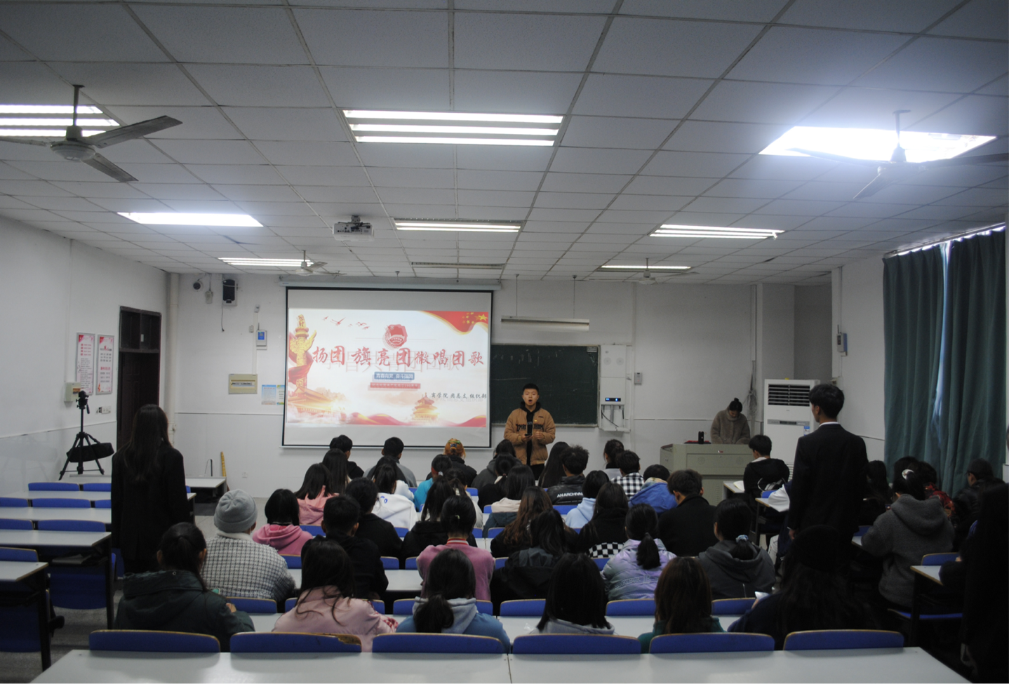 为回顾党的百年奋斗历史,进一步提高商学院青年团员的思想意识,增强共青团员的使命感和责任感,提高我院各团支部的凝聚力,营造积极向上的氛围,商学院团总支组织部于11月24日中午在1116教室开展“团歌教唱”工作,此次活动主要参与人员为各班团支书与班级团员代表。