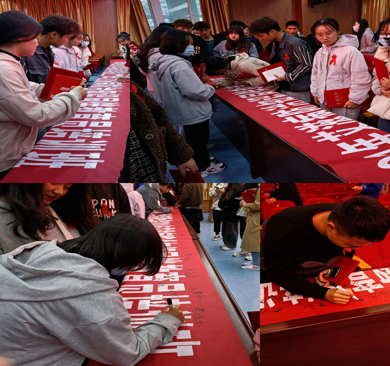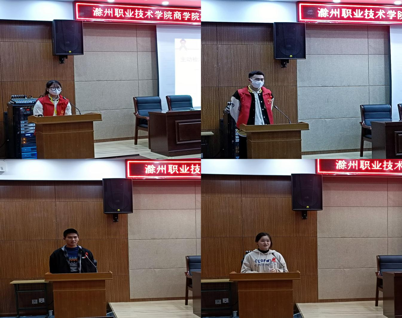 滁州疾控中心的黄科长首先邀请了几名同学回答“你对艾滋病有什么看法?说说你的观点”这个问题,有的同学觉得艾滋病特别可怕,应该正视它预防它。有的同学认为艾滋病距离自己很遥远,所以意识层面还不是很重视。有的同学将艾滋病与同性恋画等号。认为艾滋病只在同性恋中传播。随后黄科长就同学们的回答进行点评,她表达我们应该以平常心去友好的对待艾滋病患者,要更加正确的看待艾滋病毒,做到不歧视、不偏见。.艾滋病感染途径有三条,就传染病而言,艾滋病的感染性并不算强,艾滋病病毒不会通过飞沫、水源、家禽家畜传播,礼节性接吻、拥抱、贴面礼、握手、一起吃饭、共用马桶等日常接触不会传染。此外艾滋病毒在同性之间的出现率极高,尤其是男性,所以应该充分重视这个问题,要使用安全套,防患于未然。当然,我们在关爱艾滋病病毒感染者和病人的同时,也要洁身自好,预防被艾滋病病毒感染。最后,大家在宣传条幅上签名,合影留念,为本次培训会画上完美的句号。