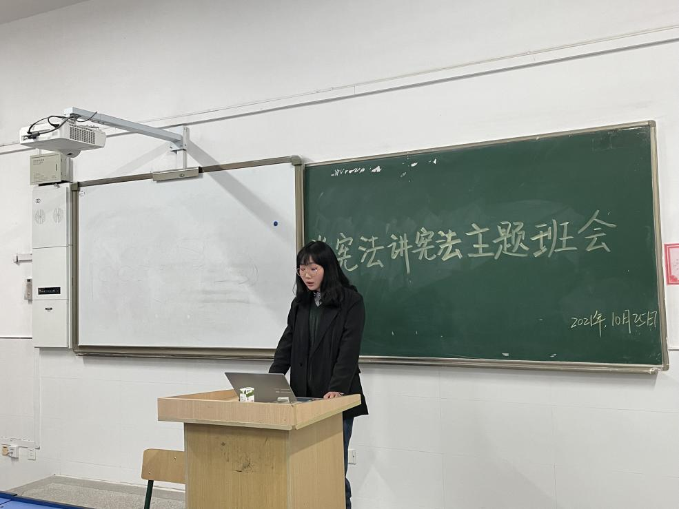 10月25日晚,21级市场营销2班全体同学在1210教室召开“学宪法,讲宪法”“主题班会。营销二班的全体同学都积极参加了此次班会活动。