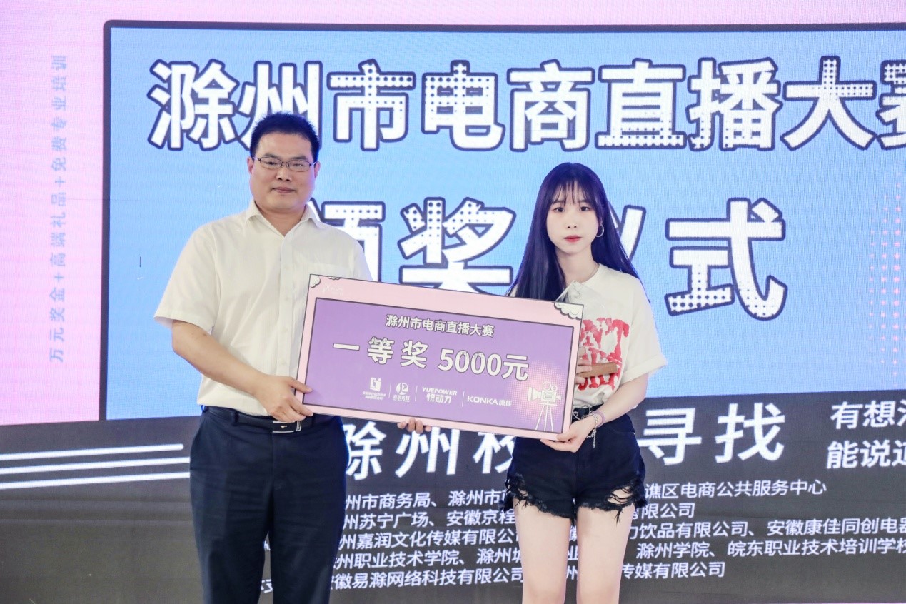 本次大赛由滁州市商务局、滁州市南谯区商务局主办,滁州苏宁广场、安徽京程信息技术发展有限公司、南谯区电商公共服务中心承办,自大赛启动以来,共有来自滁州3所高校的600余名大学生报赛参赛,45支团队进入复赛。历经一系列激烈角逐,共有6支优秀团队脱颖而出进入决赛环节,呈现了一场直播带货的实战“盛宴”,365官网学生在众多参赛队伍中脱颖而出。