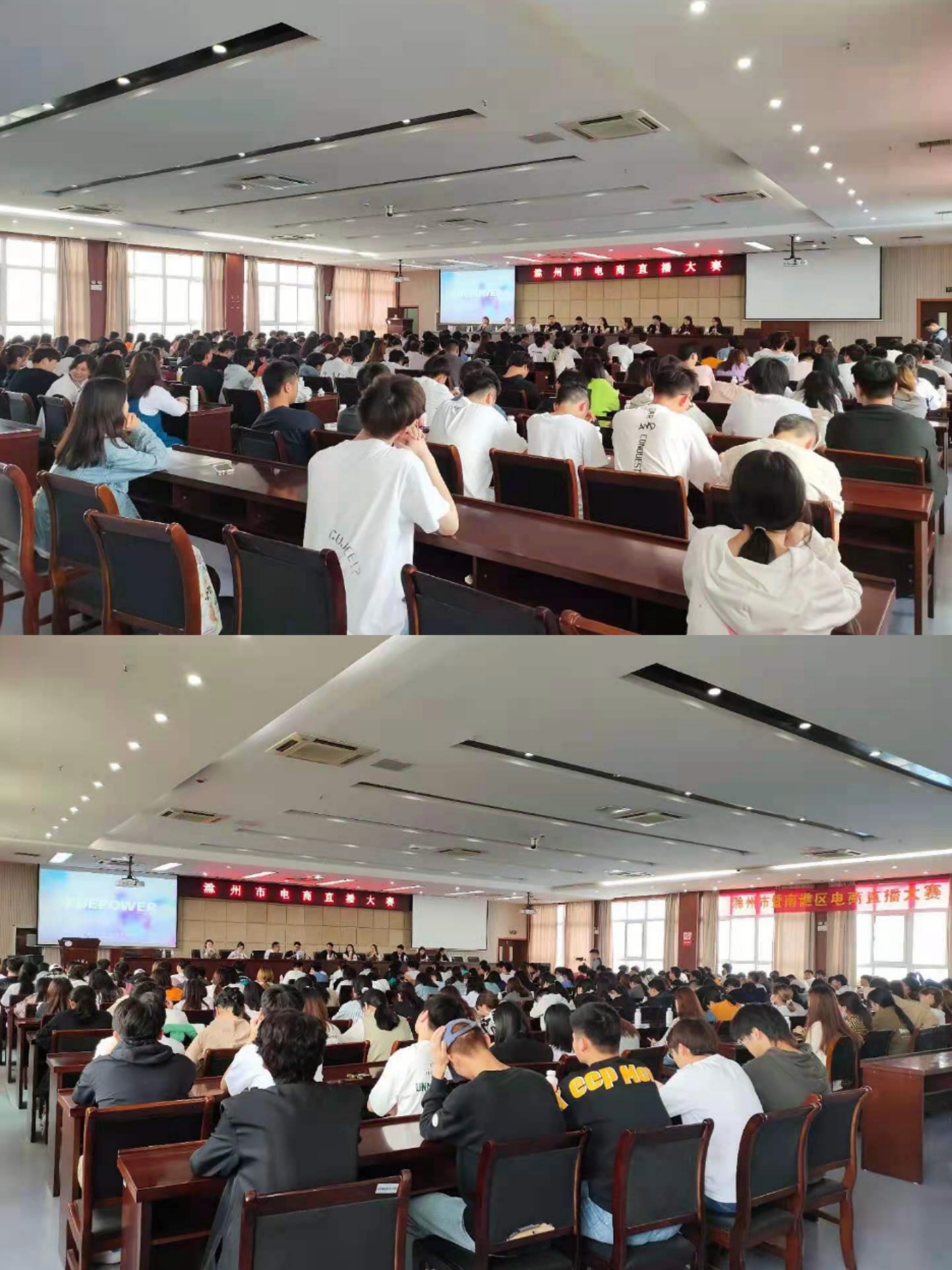 为加强我院学生对电子商务行业的认识,紧跟电子商务行业直播新形势,在校、院各级领导的大力支持下,由电子商务专业牵头组织商学院各专业学生参加由滁州市商务局、滁州市南谯区商务局主办的滁州市电商直播大赛。
