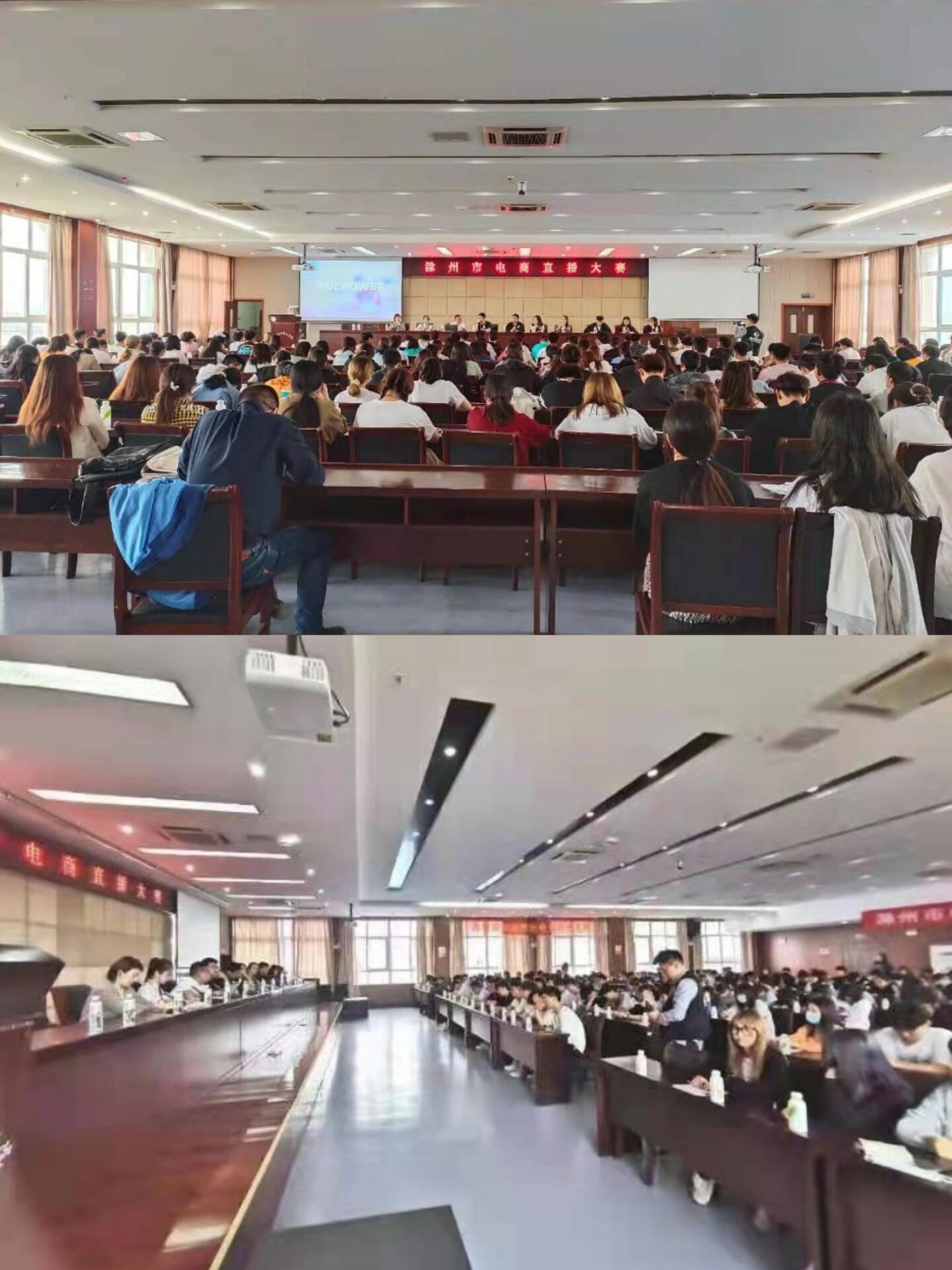 在专题宣讲中,滁州市电商直播领域优秀企业代表就电子商务进行了行业介绍以及行业分析,让大家对电商行业的新发展及以后的就业方向有了更深入的了解,并向同学们分享了电商行业的实践经验和实操技能,使同学们对参加电商直播大赛有了更清晰的认识,也让同学们对企业电商直播框架和现阶段电商直播的发展趋势有了进一步认知,开拓了眼界,丰富了知识。