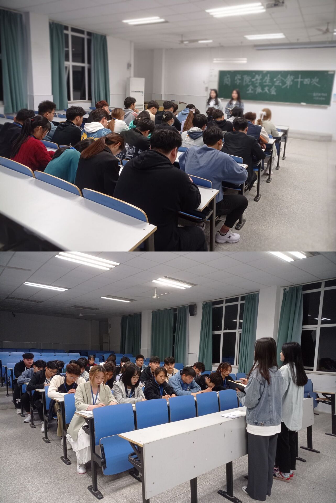 为了总结上周的工作经验,更好的协调师生关系,推进商学院工作的进一步开展。商学院学生会于4月18日晚在1119开展了商学院学生会第十四次全体大会。