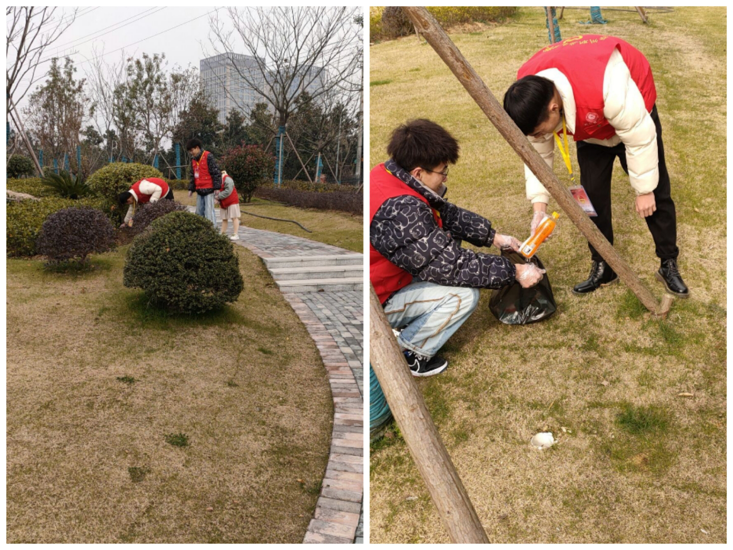 为引导广大同学自觉养成文明卫生的习惯,共同创建良好的环境。商学院团总支在体育馆附近公园举行创建文明校园活动。