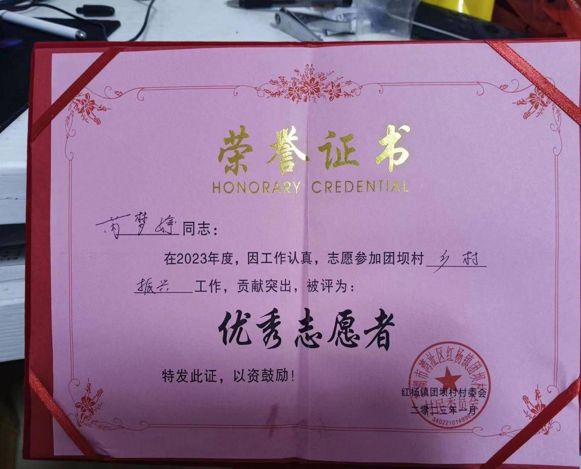 志愿者中芮梦婷同学因服务热情、工作认真,表现优异,获得“优秀志愿者”称号,她表示会继续参与志愿服务类活动,传递爱心和温暖,为建设良好社会氛围贡献自己一份力。