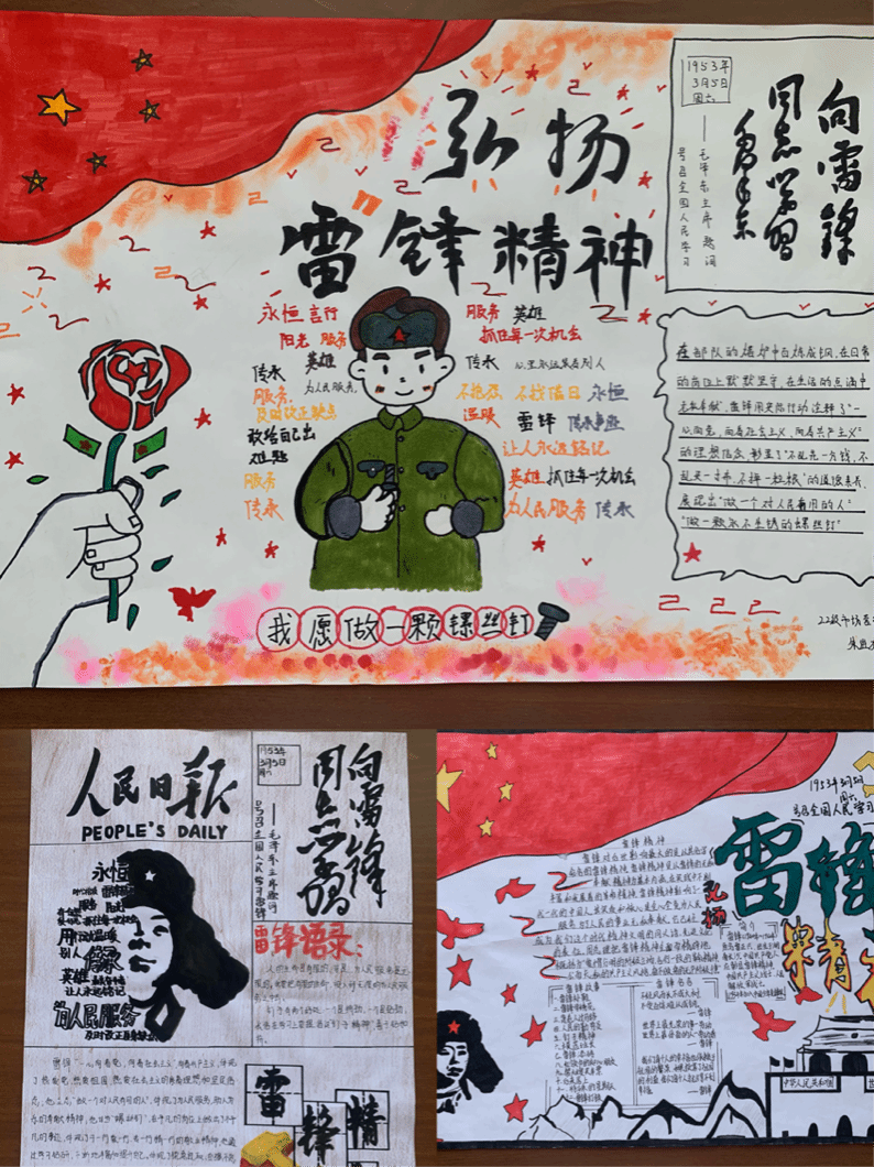 活动过程中,各班同学积极参加,精心设计,他们把对雷锋的崇敬和怀念之情深深融入到手抄报创作之中。对雷锋的生平事迹进行全方位宣传,展现雷锋的形象,赞扬雷锋的“钉子精神”,歌颂雷锋“全心全意为人民服务”的高尚品质,展示了同学们对雷锋精神的感悟和理解。此次手抄报,有的介绍雷锋的生平,有的宣传雷锋的感人事迹,有的再现雷锋日记,形象的追述了雷锋同志光辉的一生,一幅幅图文并茂的手抄报作品呈现在大家面前。本次主题手抄报评选出优秀作品学院将进行颁奖,优秀作品将在校园内集中展览。