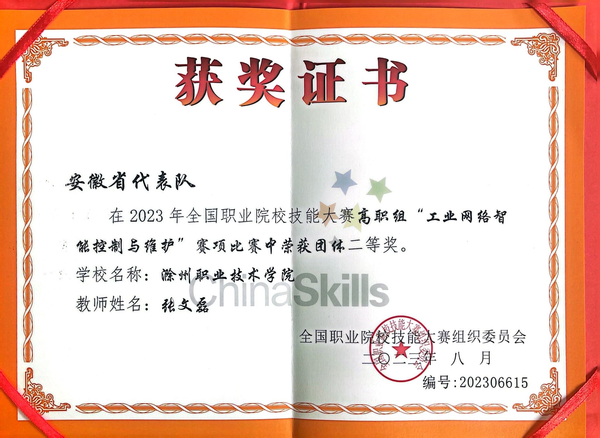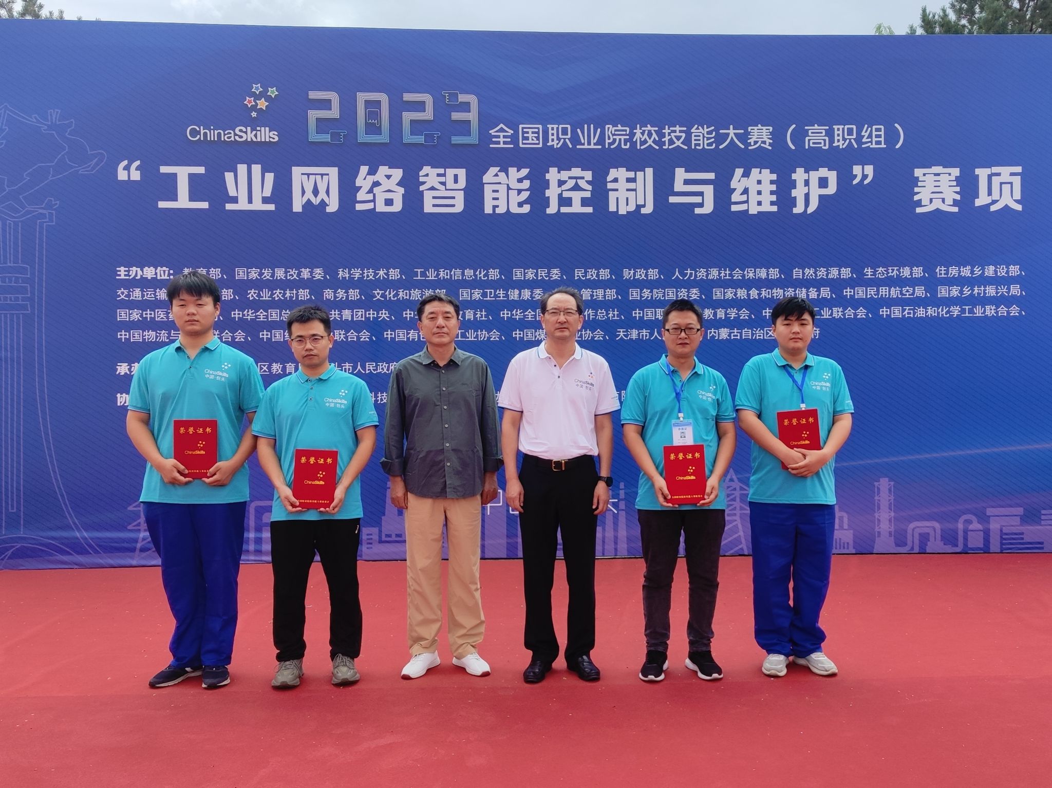 8月14日至17日,2023年全国职业院校技能大赛(高职组)“工业网络智能控制与维护(教师合赛)”赛项在包头职业技术学院举行,来自全国各省市共92所高职院校的76支学生参赛队和55支教师参赛队展开激烈角逐。365官网代表安徽省参加学生赛道、教师赛道的角逐。在校党委副书记、校长许雪峰带领下,教师张小光、张文磊指导下,21级工业机器人技术专业的孟杨、杨思远同学,沉着应战,奋勇拼搏,最终荣获该赛项学生组三等奖;张小光、张文磊两位老师同时荣获教师组二等奖,实现365官网装备制造大类该项赛事新突破。