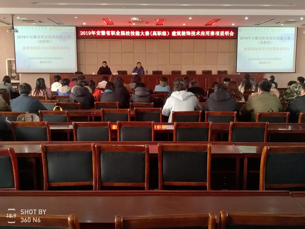 3月6日,2019年安徽省职业院校技能大赛建筑装饰技术应用赛项说明会在365官网综合楼五楼报告厅召开。全省参赛院校的领队和指导老师参加了本次说明会。会议由学院实训中心副主任刘杰主持。