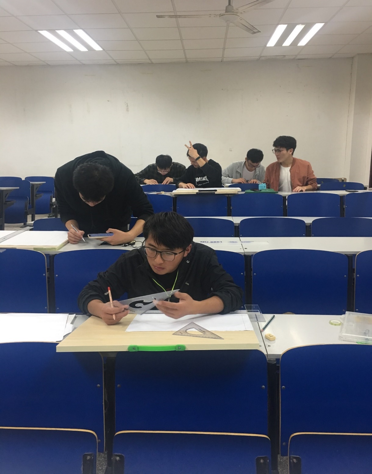 比赛于11月2日下午在4502机房举行,经过初步筛选,土木系相关专业20余名选手参加了此次比赛。比赛分两个环节进行,尺规绘图和工程图绘制,以两场比赛总成绩的高低进行排名。经过两个小时的激烈比赛,圆满地完成了所有比赛项目。最终,18造价五年制班王雨同学荣获一等奖;17造价卢中福和18造价五年制班赵明宇两位同学荣获二等奖;18造价五年制班孙全伟、17造价班殷子腾和陈陆军三位同学荣获三等奖(下图为部分参赛同学紧张比赛中)。