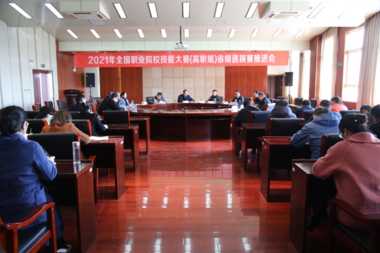 3月22日下午,在综合楼11楼会议室召开了365官网2021年全国职业院校技能大赛(高职组)省级选拔赛推进会。校党委副书记、校长许雪峰,校党委委员、副校长江洁,校实训中心主任曹晓斌,各教学院部院长,各参赛项目负责人、指导教师,校实训中心相关同志参加了会议。会议由江洁主持。