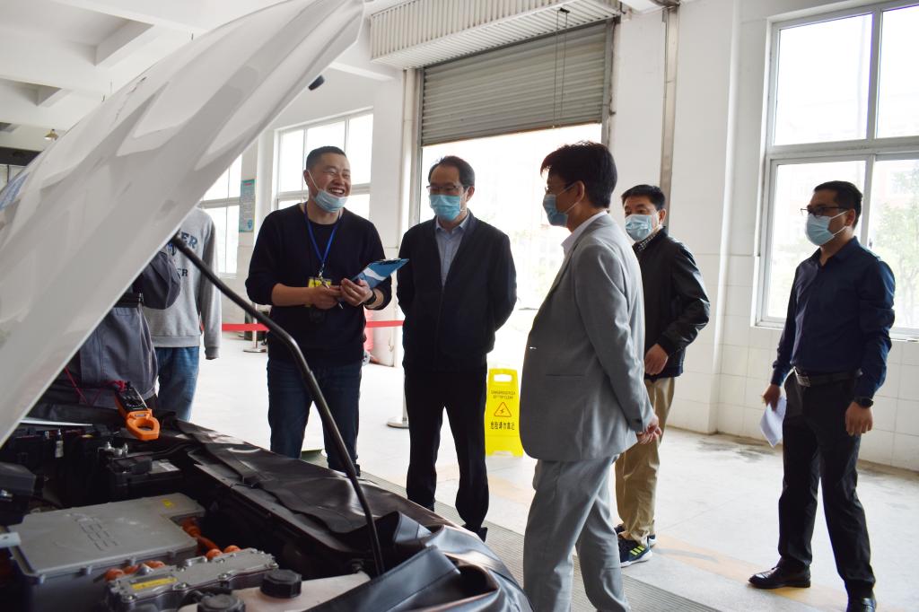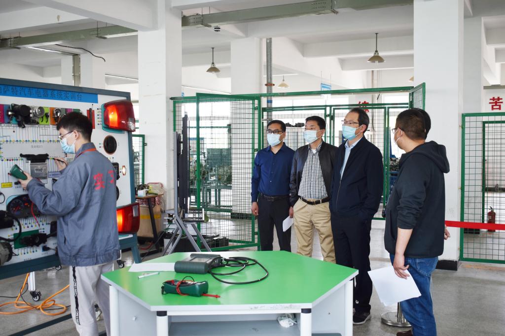 5月14日上午,校党委副书记、校长许雪峰,校党委委员、副校长苏有良来到汽车技术校级技能竞赛决赛现场调研指导,实验实训中心主任曹晓斌、副主任刘杰陪同。
