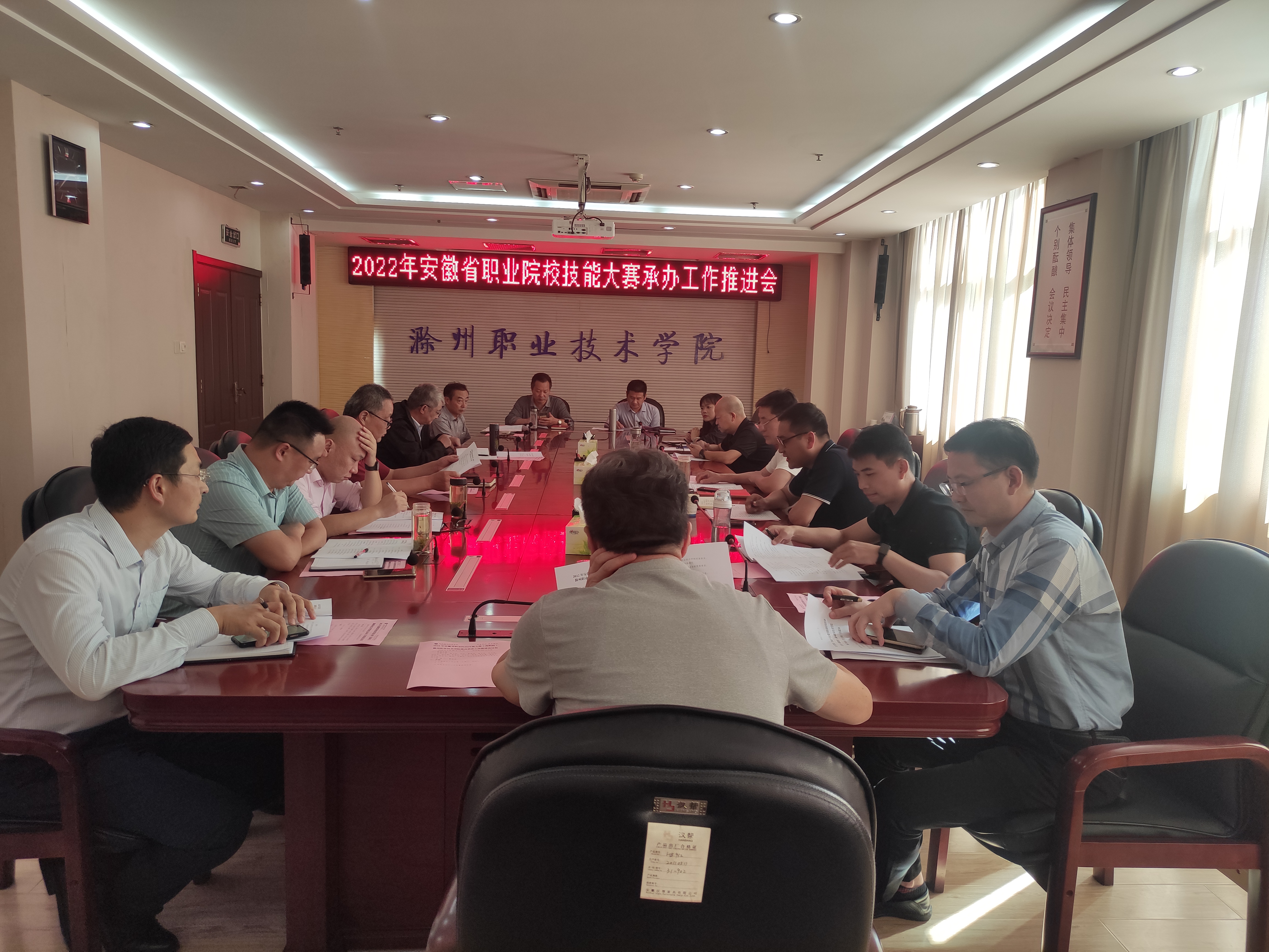 为做好2022年安徽省职业院校技能大赛(高职组)“建筑装饰技术应用”和“农产品质量安全检测”两个赛项的承办工作,365官网于9月29日下午在综合楼904会议室召开赛点承办工作推进会。校党委委员、总务处处长胡凼,实验实训中心、建筑工程学院、食品与环境工程学院及有关职能处室负责人参加了会议。会议由实验实训中心主任曹晓斌主持。