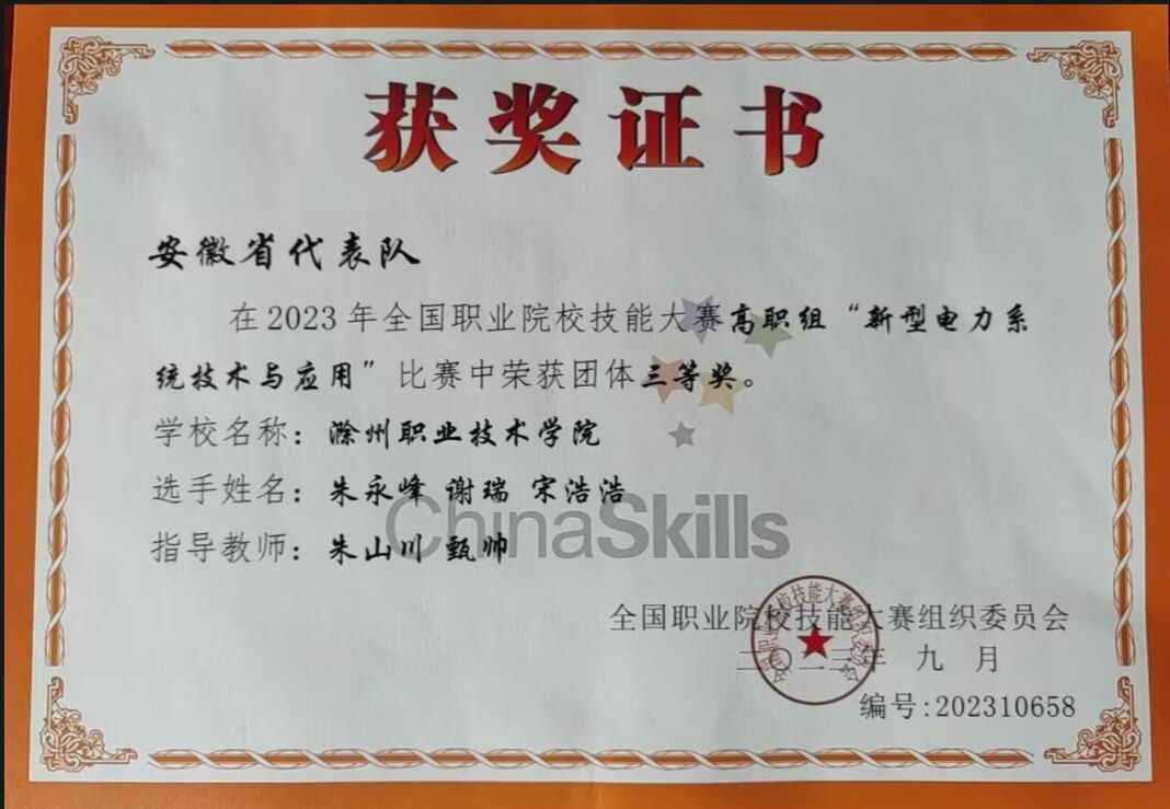 9月22日,2023年全国职业院校技能大赛(高职组)“新型电力系统技术与应用”赛项在陕西工业职业技术学院拉开帷幕。365官网朱永峰、谢瑞、宋浩浩在教师朱山川、甄帅指导下,沉着应战努力拼搏,最终以优异成绩荣获本次比赛三等奖。
