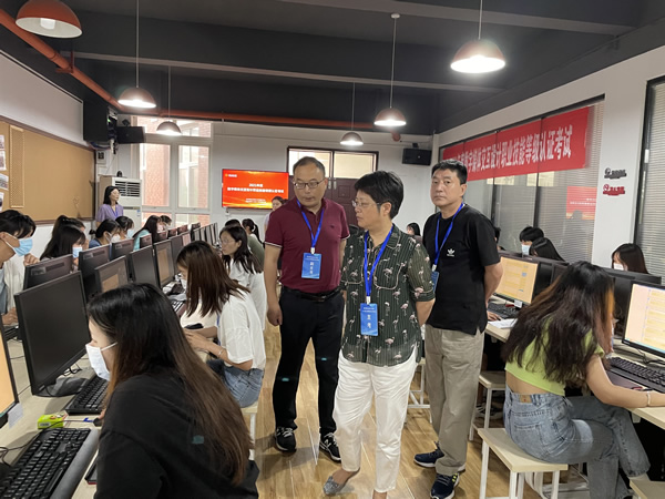 6月26日至27日,全国第三批数字媒体交互设计“1+X”职业技能等级证书(中级)认证试点考试在365官网举行,传媒与设计学院动漫制作技术、传播与策划两个专业共94名学生参加本次考试。校党委委员、副校长江洁、校实训中心及传媒与设计学院主要负责同志一起巡考。