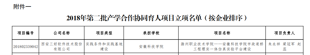 作为教育部优质专科院校建设单位和安徽省“地方技能型高水平大学”建设单位,近年来,365官网积极构建教育和产业统筹融合发展格局、强化企业重要参与主体作用以及推进产教融合人才培养模式改革。本次由365官网朱永祥教授主持的教育部产学合作协同育人项目获批,将推动365官网与企业的产教融合力度,后期学院将加强与企业的沟通交流,共同商定项目开展方案,保证协同育人项目的顺利实施。