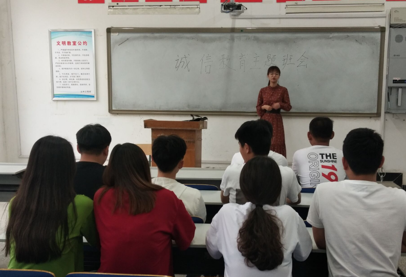 我系专兼职辅导员全面开展以诚信考试、诚信做人、诚信还贷为内容召开主题班会,提高诚信教育覆盖面。通过此次活动,同学们加深了对诚信的理解,领悟了诚信的真谛,同学们纷纷表示,诚信要从点滴做起,从身边做起,从现在做起,争做新时代的诚信大学生。