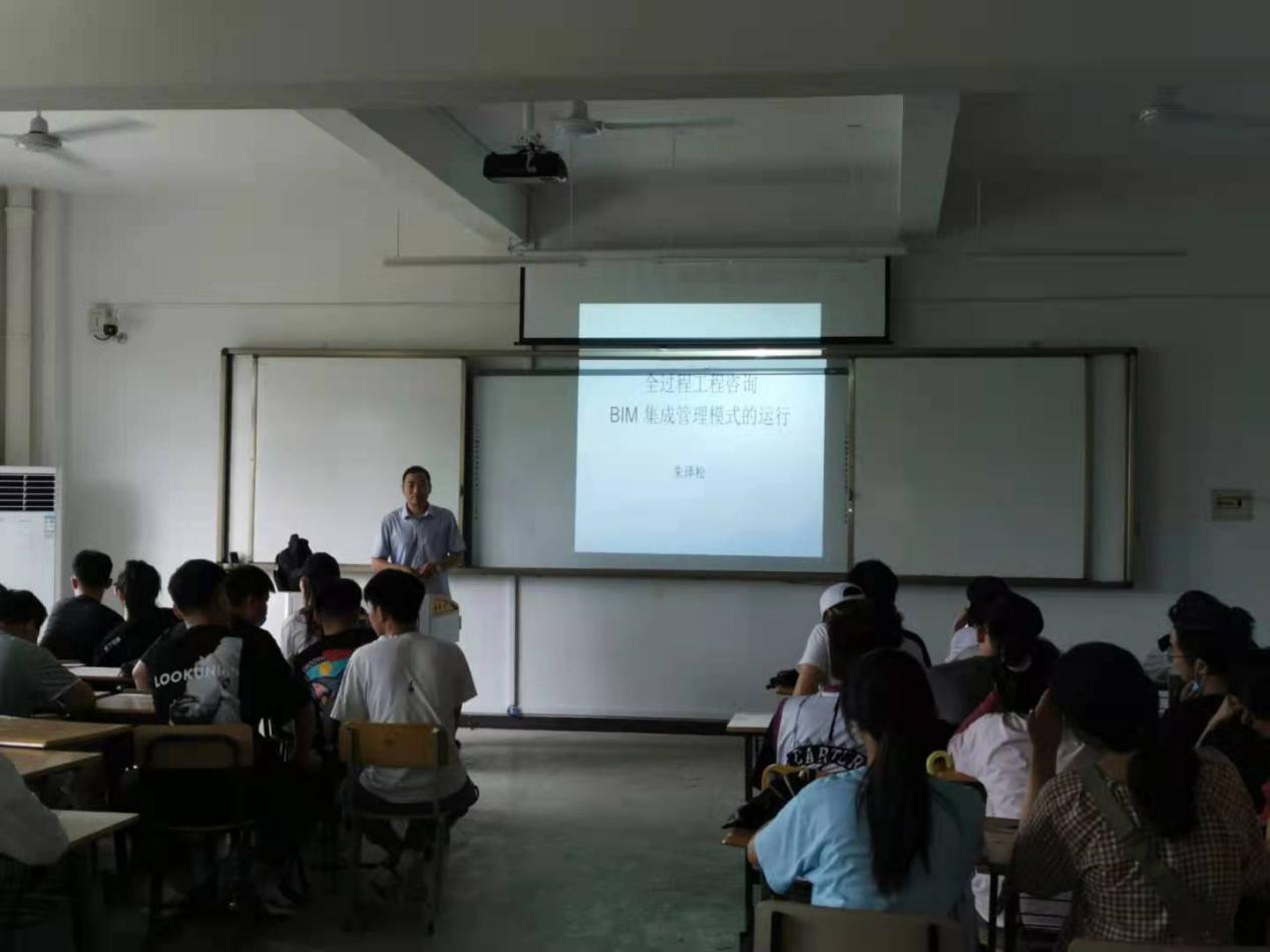 2020年6月27日下午16:50时,建筑工程学院朱泽松副教授在工法楼104教室,举办题为“全过程工程咨询BIM 集成管理模式的运行”的讲座,建筑工程学院建筑工程、工程监理和工程造价专业学生听取了讲座。