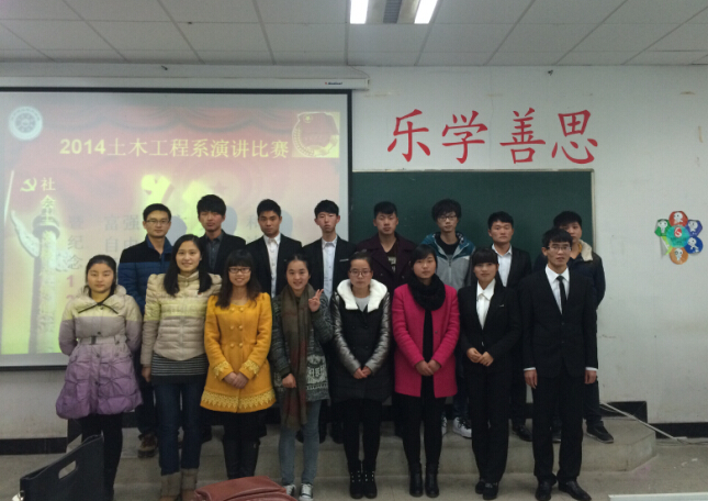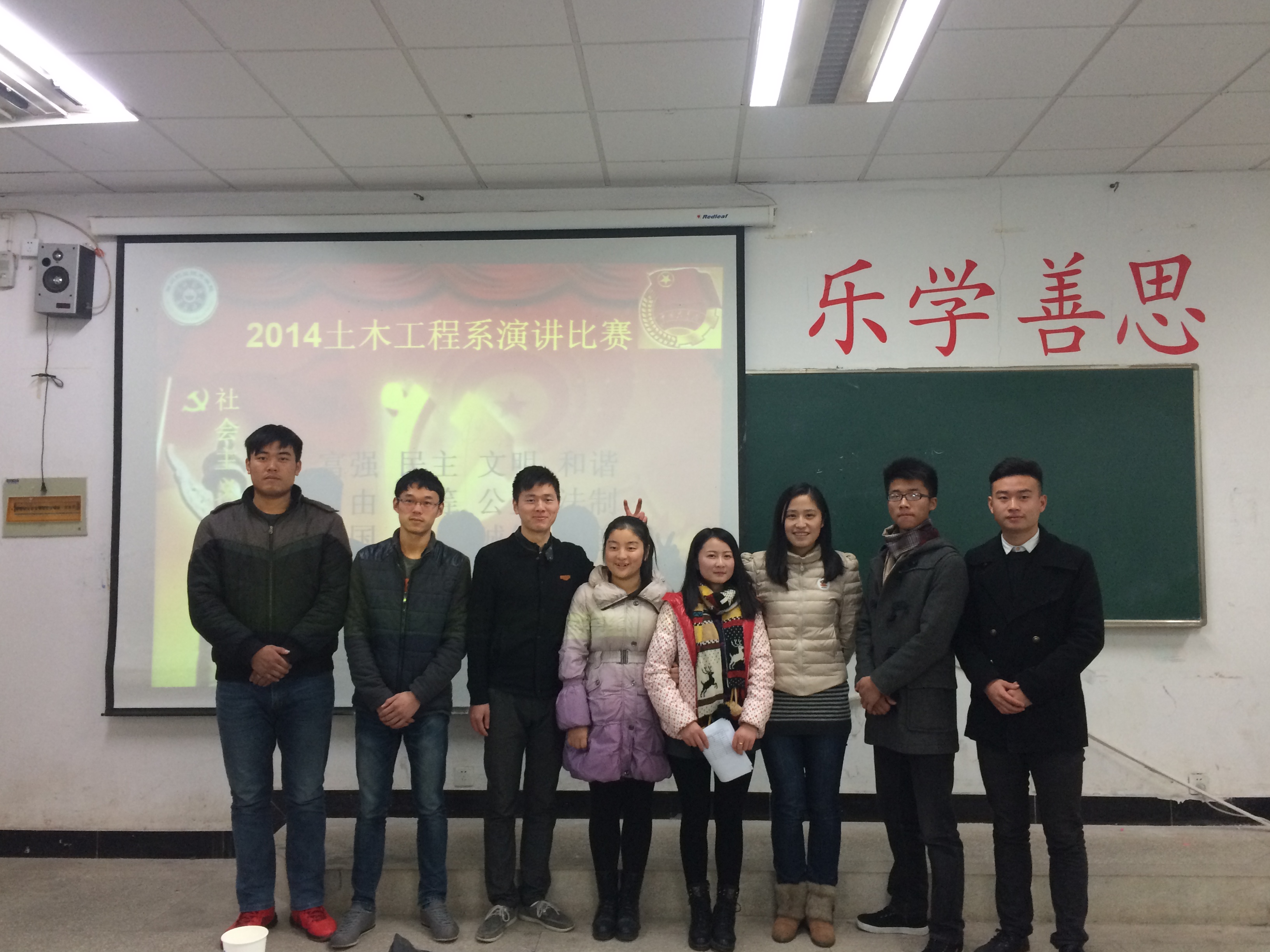 12月9日中午,土木系在多媒体教室4101展开了一场关于践行社会主义核心价值观的演讲比赛。担任此次比赛的评委有汽车系主席任良斌,土木系学生会主席段少祥,副主席刘继春、於成龙以及系团总支副书记沈欢。这次的比赛十分激烈,对于践行社会主义核心价值观每个人都有着自己的看法。并且从每位选手的精彩发挥来看,他们都是精心准备良久的。当然他们精心的付出也是值得的为此而获得了评委们的一致好评。相信通过这次比赛会使我们大家更加深刻的了解社会主义核心价值观的重要意义。