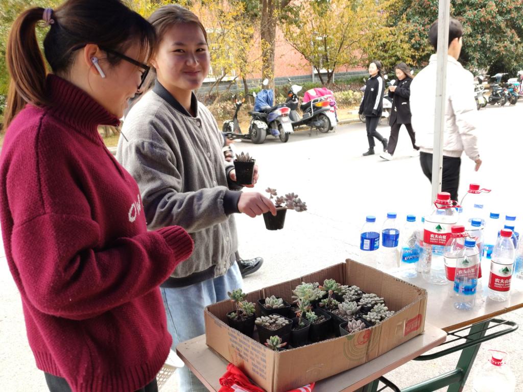 1125号上午8点在女生寝室一号楼下,为了积极响应我市创建文明城市,争做文明校园,致研建材社与爱心社共同举办可回收物换多肉环保活动,并积极宣传校园环保的知识,增强同学们的环保意识。