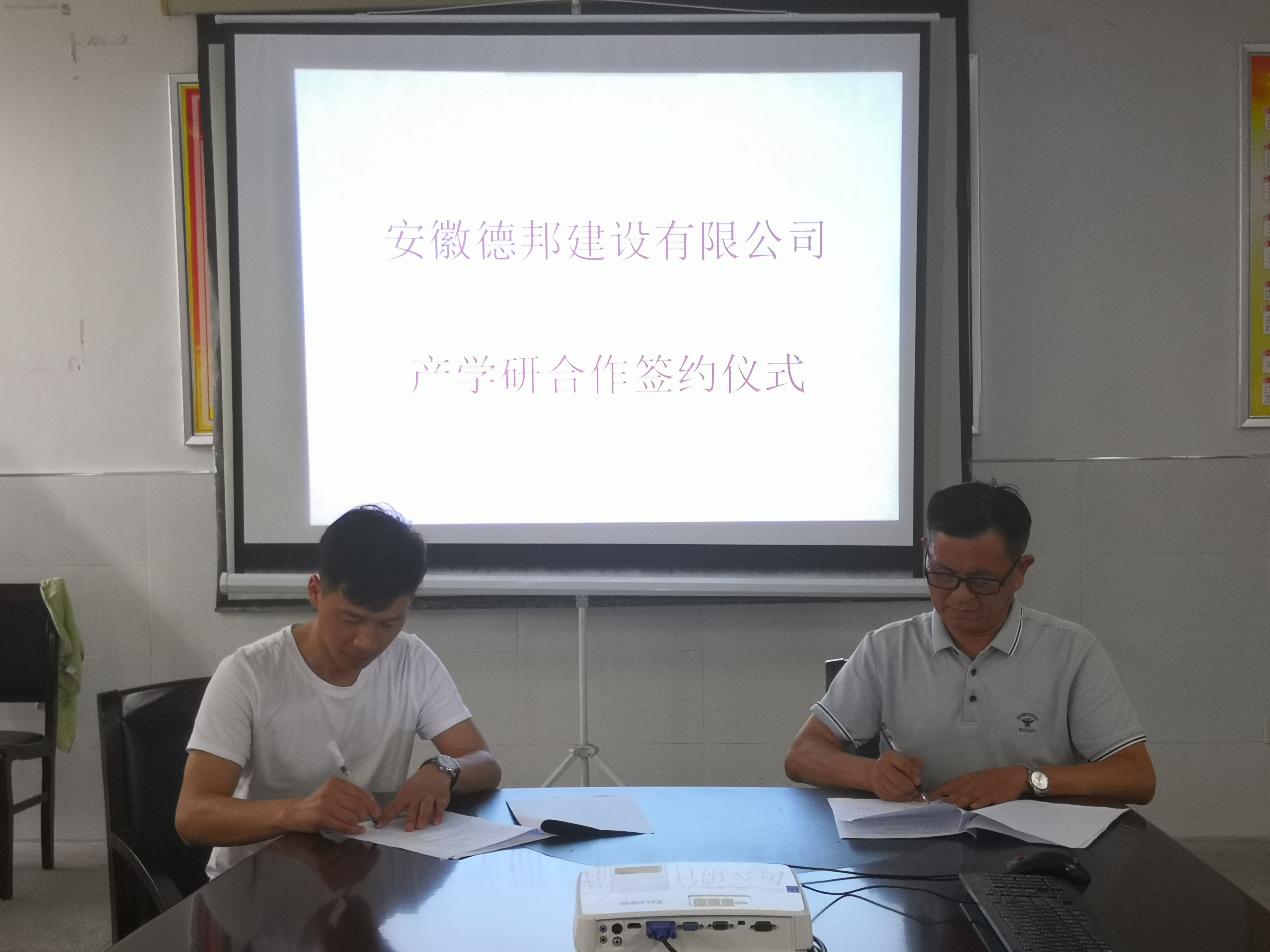 7月6日,学校与安徽德邦建设有限公司签订“产学研”合作协议。安徽德邦建设有限公司总经理王凤林,学校党委委员、校长助理、招生就业处处长穆松、建筑工程学院院长朱永祥、书记刘文元、副院长张国富及实训中心等相关人员参加会议。