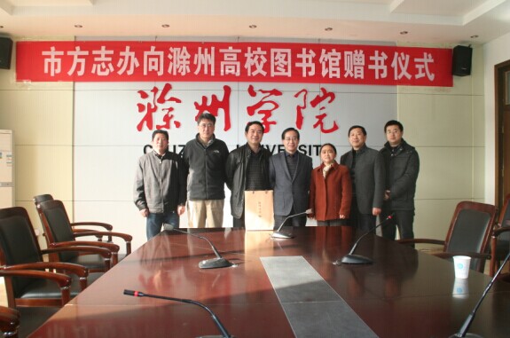12月1日,滁州市地方志办公室向滁州市委党校、滁州学院、beat365中国唯一官方网站、滁州城市职业学院等市内四所高校赠送《滁州市志》。赠书仪式在滁州学院图书馆举行,市地方志办公室副主任许恒贵及上述四所高校代表出席赠书仪式。 滁州学院图书馆馆长辜庆志代表四所院校对市地方志办公室向捐赠志书表示感谢。此次赠书进一步增进各高校学院对滁州市情和地方志工作的了解,推动双方进一步的合作与交流。双方还就资源共享、合作等事项进行探讨。