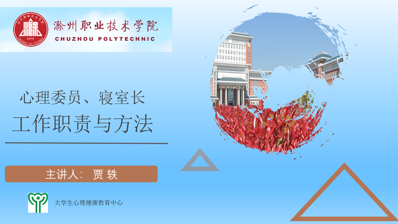 为建设好“校—院—班级—寝室”四级心理工作网络机制,增强班级心理委员和寝室长工作意识和工作责任感,积极做好心理危机工作。12月2日晚,校大学生心理健康中心在南阶205教室,面向全校十一个教学院部2020级心理委员和寝室长开展《心理委员、寝室长工作职责与方法》专题培训,本次培训由校大学生心理健康中心贾轶老师主讲。
