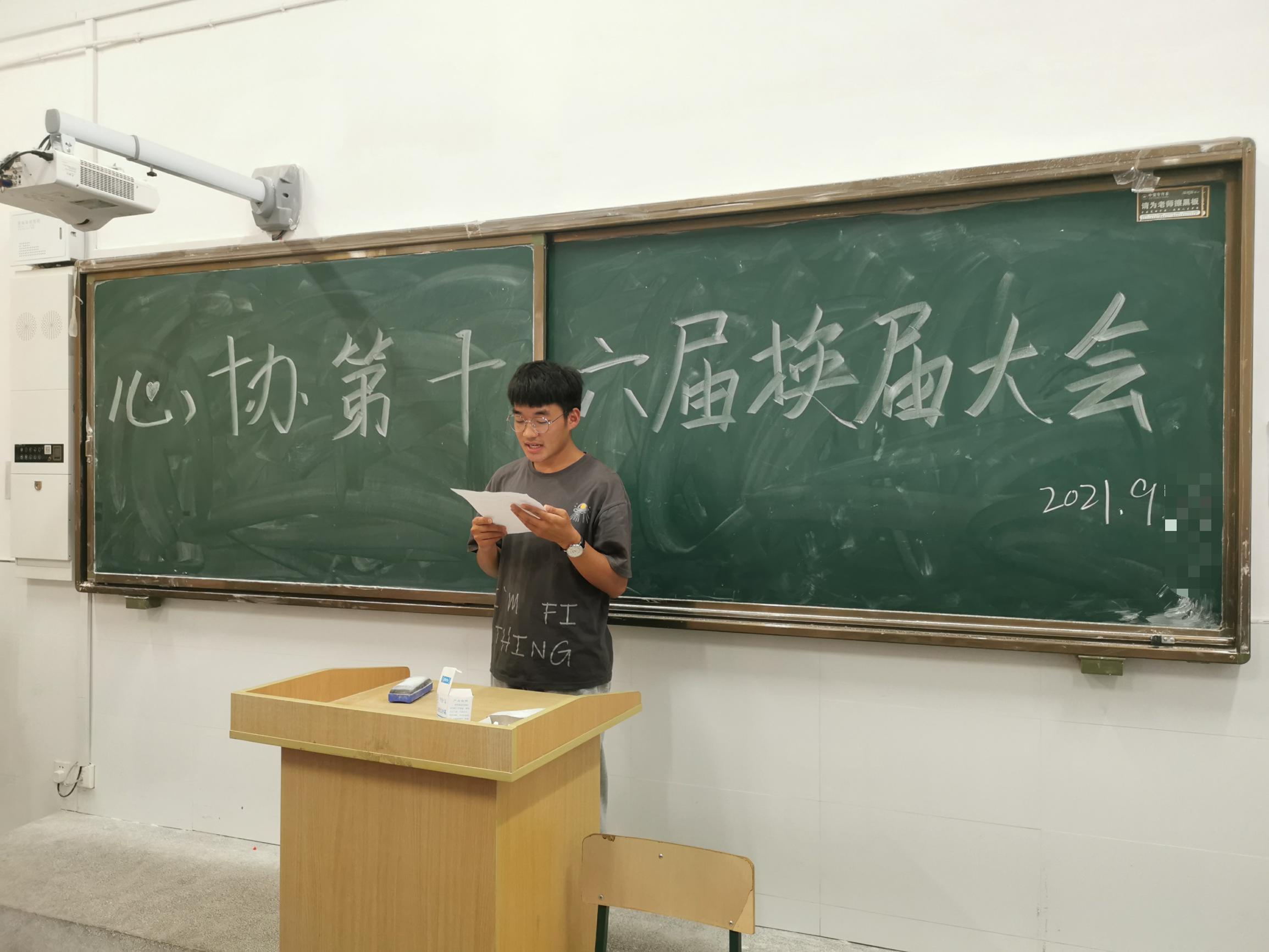 2021年9月22日中午,校心理健康协会在1103教室举行第十六届换届大会。大学生心理协会会长、部长以及各干事参加了此次大会。会议由会长吴晓东主持。