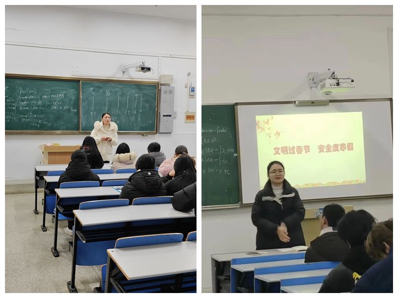 为倡导同学们安全、文明离校,辅导员对全体学生进行安全教育,带领大家认真学习《过好假期、爱好自己》(安徽大学生个人安全提示),叮嘱同学们在寒假期间要持续注意自身人身安全、交通安全、财产安全、饮食安全等,时刻保持警惕,以防落入各类诈骗圈套,倡导同学们文明过寒假、安全过春节,并提前为同学们送上节日祝福。