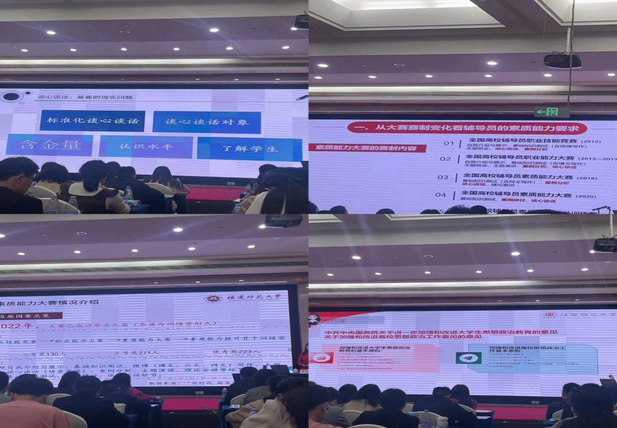 此次研修中,365官网辅导员认真聆听学习了来自广东技术师范大学陈小花教授、沈阳工业大学党委学生工作部部长李青山等六名专家专题讲座。大家积极结合工作实际,围绕辅导员技能比赛的基础知识测试、案例研讨、谈心谈话等环节始终认真学习,拓宽视野,巩固和提升业务技能水平。