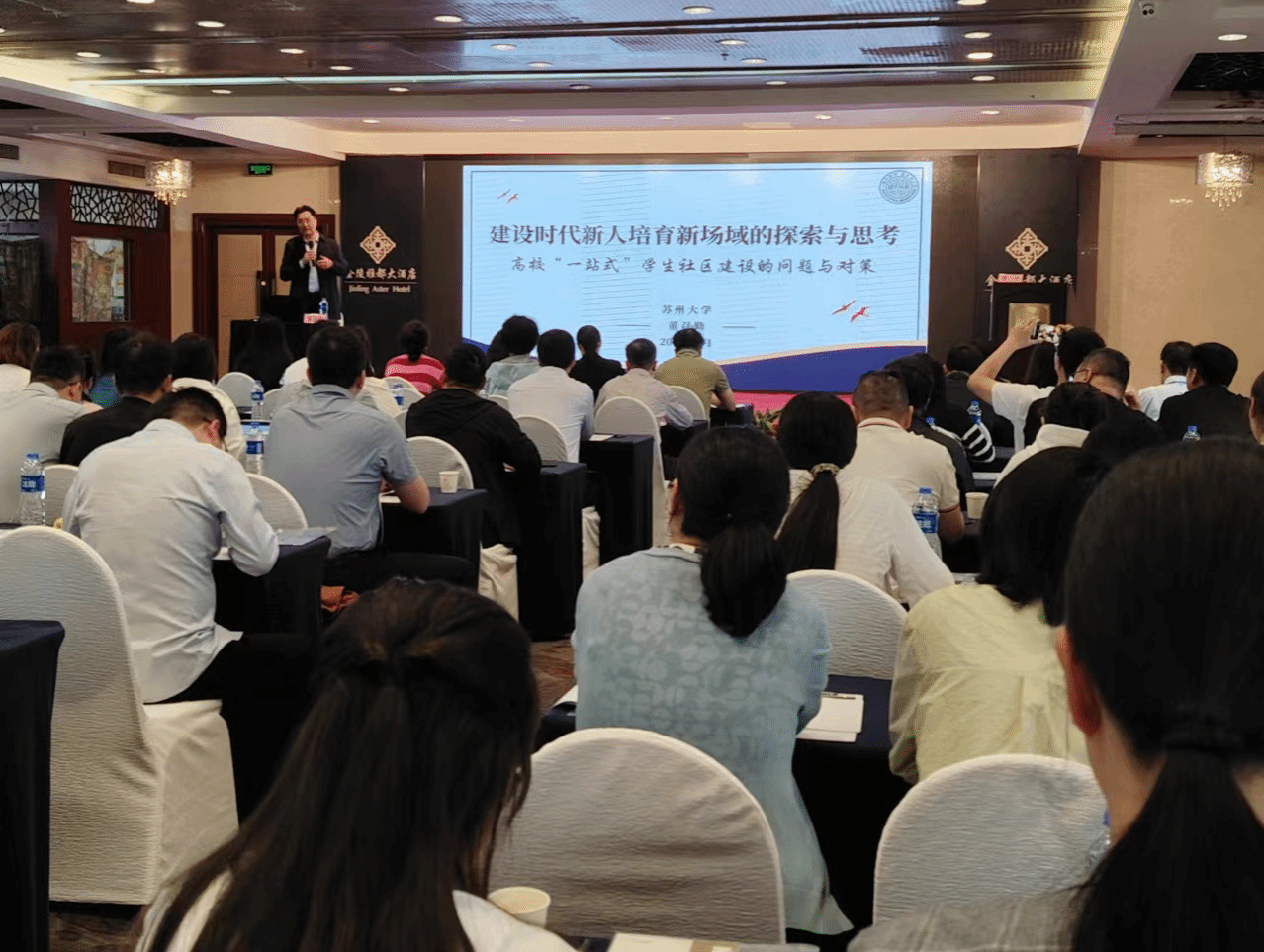 会议期间,受邀的中南大学、苏州大学、北京航空航天大学、上海大学、南京审计大学等众多高校相关校领导、有关领域专家,分别围绕“一站式”学生社区综合管理模式建设作了主题报告讲座,包括《聚焦“铸魂筑梦”打造一站式社区育人综合体》《建设一体化空间 培养一流人才》《创新机制、汇聚合力,打造高校“一站式”社区育人坚强阵地》《对标“一站式”学生社区综合管理——探索构建一流思政实践资源体系》《书院制背景下“一站式”学生社区综合管理模式建设》等,并现场与参会人员进行深入研讨交流。参会人员还实地参观考察了苏州大学“一站式”学生社区。