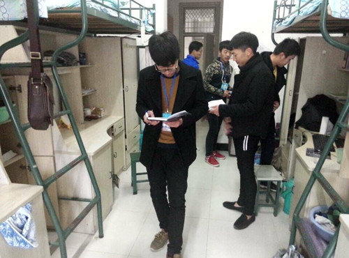 寒冷的冬天已到,为进一步营造良好的学习氛围, 培养良好的生活习惯,2015年11月25日下午经贸系团总支书记及各班级辅导员深入经贸系学生宿舍,对宿舍卫生、用电安全进行全面检查。