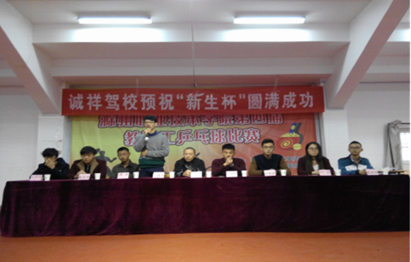 为了丰富大学生的课余生活,传承乒乓文化,发扬国球精神,增进同学们之间的友谊和技术交流,展现社团的新风貌。近日,由院飞翔乒乓球协会举办的“新生杯”乒乓球比赛在新操场乒乓球室正式开幕。院后勤总公司副总经理吴杰、大学生社团联合会主席胡超群、土木系学生会主席史宴凯、乒乓球协会第六届会长王嘉瑞、大学生社团联合会财务部部长成龙、心理协会会长陈志杰、网球协会会长王乐乐、职业发展协会会长刘莉参加此次活动。