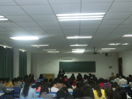 4月23日下午,在经济贸易系组织2012级毕业生在1102教室举办了企业人士进校园活动。新西兰驻上海总领事馆文化教育处徐女士、安徽省外办外事服务中心副主任王晓华、安徽省外事办公事国际交流中心蒋涛科长、英国留学专家范梦达先生、美国留学专家胡洁女士受邀担任本次活动的主讲。2012级毕业班辅导员及2012级毕业生参加了本次活动。