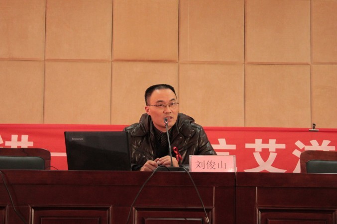 紧接着刘俊山科长对艾滋病做了深入的讲解,他还向同学们展示了电镜下艾滋病毒的图像,还用图形的方式说明了艾滋病近年来的传染趋势,同时也向同学们介绍了艾滋病的传播途径和有效预防艾滋病的方法。
