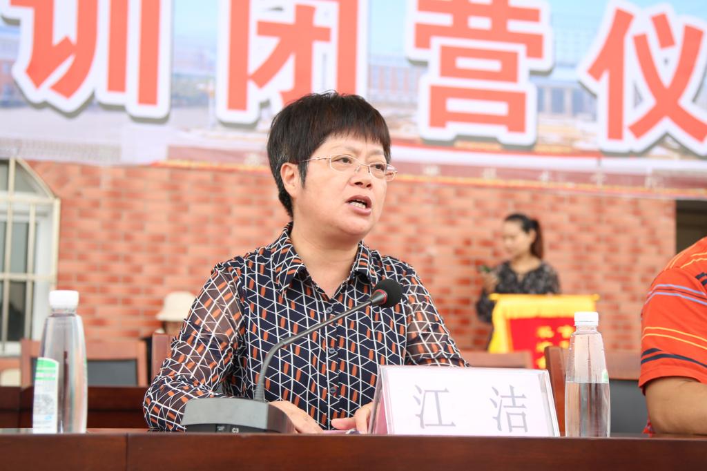 校党委委员、副校长江洁在军训闭营式上发表讲话。她代表学校对连日来辛勤付出、无私奉献的部队全体军训教官们致以衷心的感谢和崇高的敬意,向敢于吃苦、奋力拼搏的2019级全体军训新生表示热烈的祝贺。她充分肯定了军训取得的良好成效,并指出,军训不仅是一段故事的完美收场,更是同学们另一段人生的精彩开始。她希望同学们把军训中的好思想、好作风发扬光大,持之以恒地融入到自己今后的日常学习和生活中,不忘初心、牢记使命,诚实做人、踏实做事,刻苦钻研、努力拼搏,勇于担当起时代起赋予我们的重任。希望同学们带着历经军训的自豪与欣慰,带着内心深处的执着与坚强,增知长见、增技强能,努力把自己培养成为一名思想成熟、品德优良、适应社会发展和时代需求的高技能高素质人才!