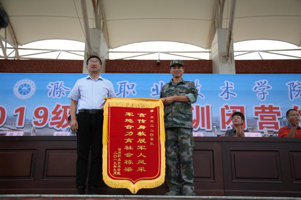 闭营式上,校党委委员、校长助理、招生就业处处长穆松代表学校向承训部队赠送了锦旗。