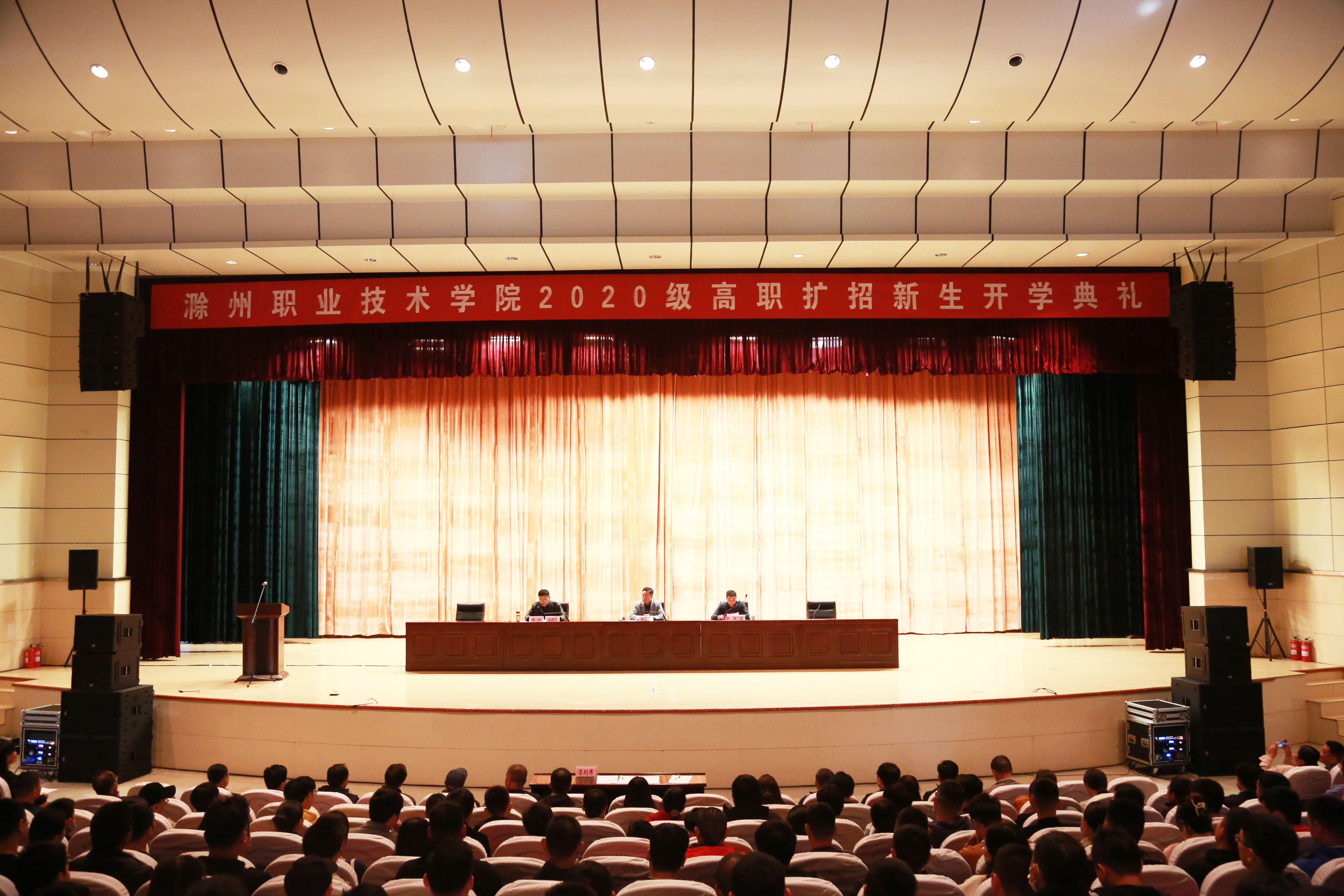 汪上代表全校教职员工向2020级高职扩招新生表示热烈的欢迎和诚挚的祝福。他希望新同学们,一是要抓住机遇,用心珍惜学习机会,端正学习态度,顺利完成学业;二是要注重结合自身实际,正确处理好学习与工作的关系,健康地有序开展新的学习生活,提升自身综合素质;三是要坚持学有所获、学有所用,不忘初心,勇于担当,努力奋进。汪上寄语新生,理想信念是照亮成功之路的不灭灯塔,读书学习是成就事业人生的制胜法宝,拼搏奋斗才是实现人生价值的必由之路,希望新生能够科学规划大学生活,筑梦滁州职院,把人生理想汇入时代洪流,让初心梦想与家国情怀共振,用奋斗实现人生最美芳华。