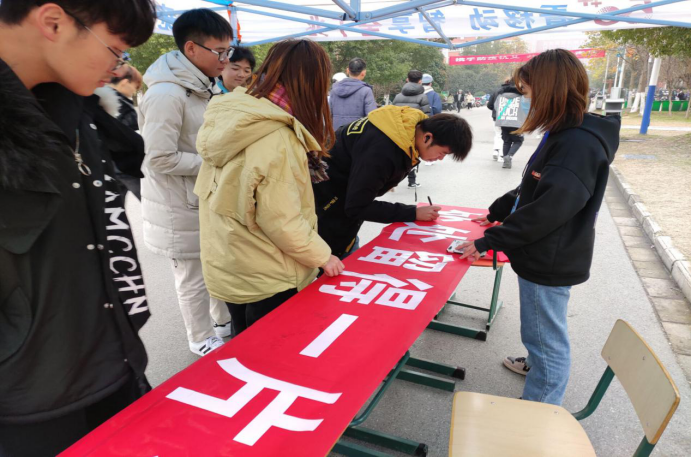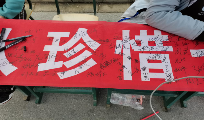 下午四点,活动结束,横幅上密密麻麻的写满了各个同学们的签名。