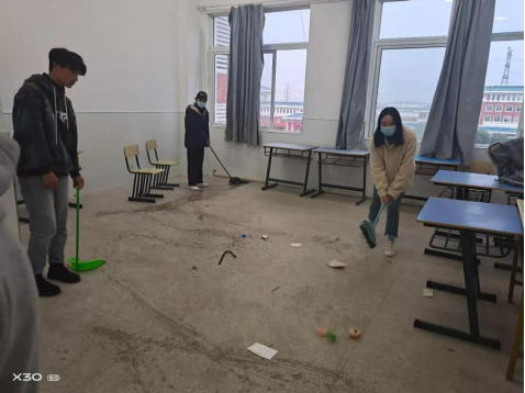 周二上午一二节课同学们学习了劳动理论知识,了解到了劳动的重要性,并提高了劳动意识;下午五六节课钱磊老师带领同学们学习了马克思主义劳动观,七八节课同学们分组对院部教室进行了仔细地清扫。同学们看着自己的劳动成果脸上露出了笑容。
