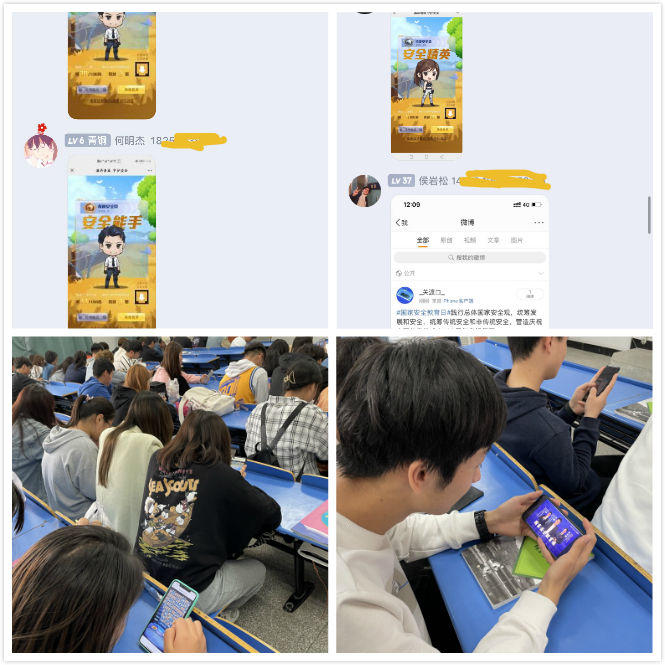 此外,各班级陆续组织学生在“中国大学生在线”平台收看“千万学生同上一堂国家安全教育课”主题公开课,并发动学生积极参与“全国高校学生国家安全知识线上竞答”活动、“微博#国家安全日#话题”互动,观摩“《一起涨芝士》之国家网络安全特辑”。