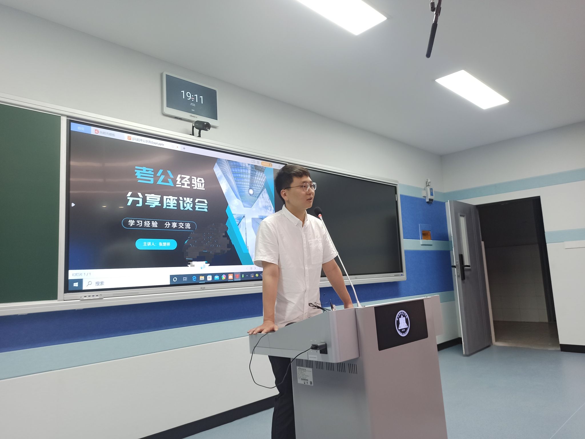 为了帮助同学们更深入地了解公务员考试,解答同学们备考过程中的疑惑,5月8日晚,本科教育支部在1202教室举行了考公经验分享会。会议由本科教育党支部书记薛天飞主持,辅导员杨付春、余道奎老师及约20名备考同学参加了会议。