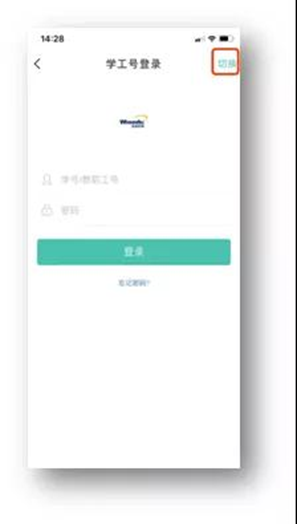 3.点击右上角的【切换】选择对应的学校名称,输入正确的账号/密码((未使用过今日校园的用户账号为身份证号码,密码默认6个1)),点击登录,首次登录会提示绑定手机号,根据提示输入手机号,接收短信验证码,即可完成登录。