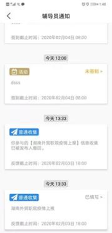 在“消息”中接收通知,及时点击进入“信息收集”,在规定的时间范围内完成信息的填写,注意按照填写格式要求填写,否则辅导员老师会要求打回重填哦!